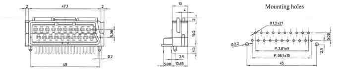 | Strombelastung Kontakte: | 3A - 20°C / 1A - 70°C | |