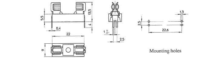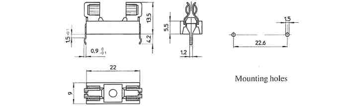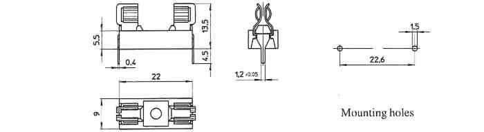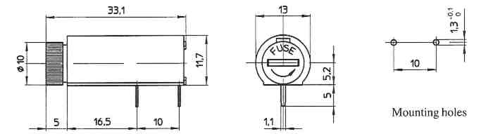 Sicherungshalter zur Printmontage der Serie "PTF/15(S/B)", "PTF/45", "PTF/50", "PTF/60", "PTF/65", "PTF/75", "PTF/76", "PTF/77", "PTF/78", "CT/134", "CT/136"